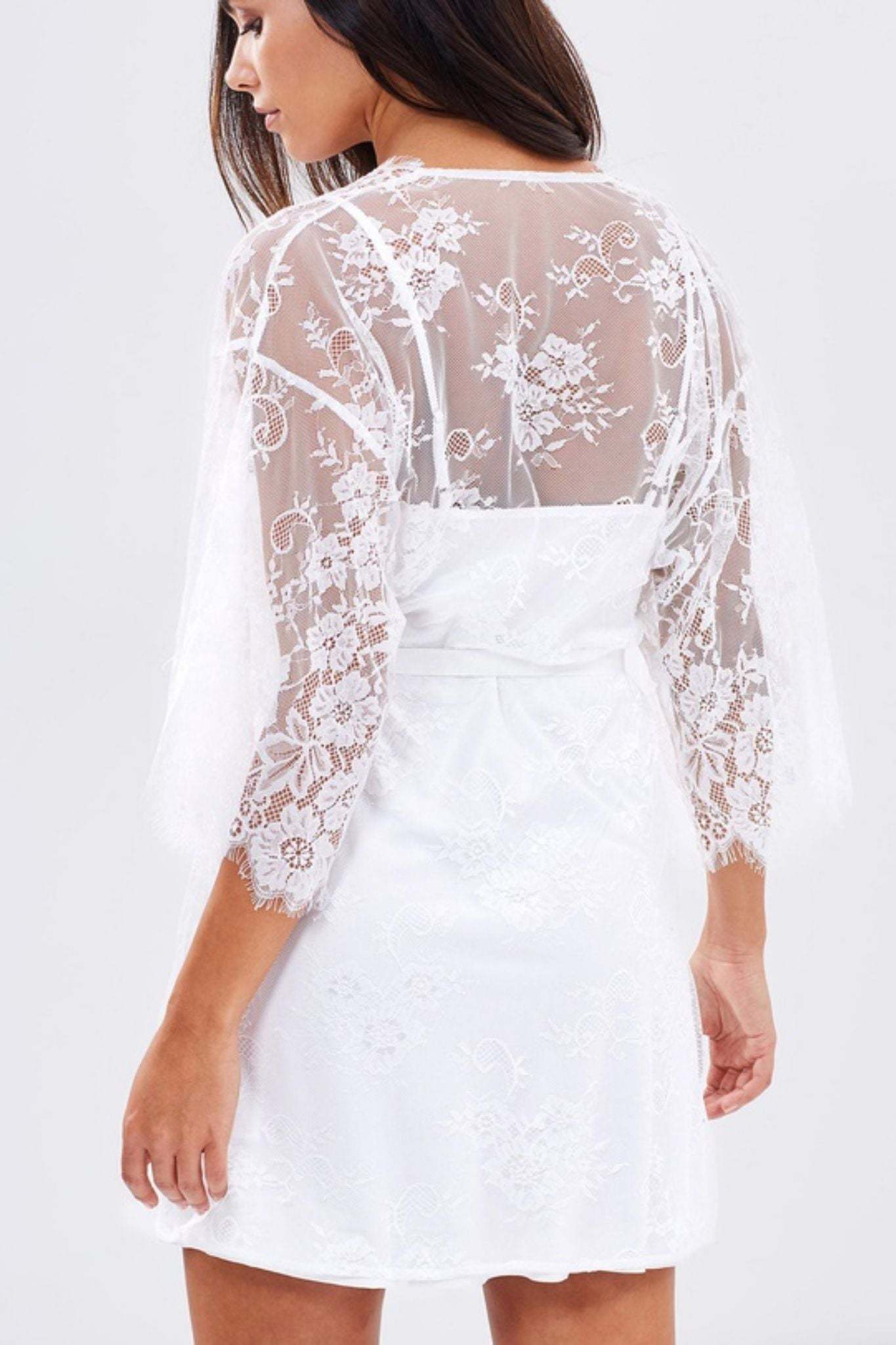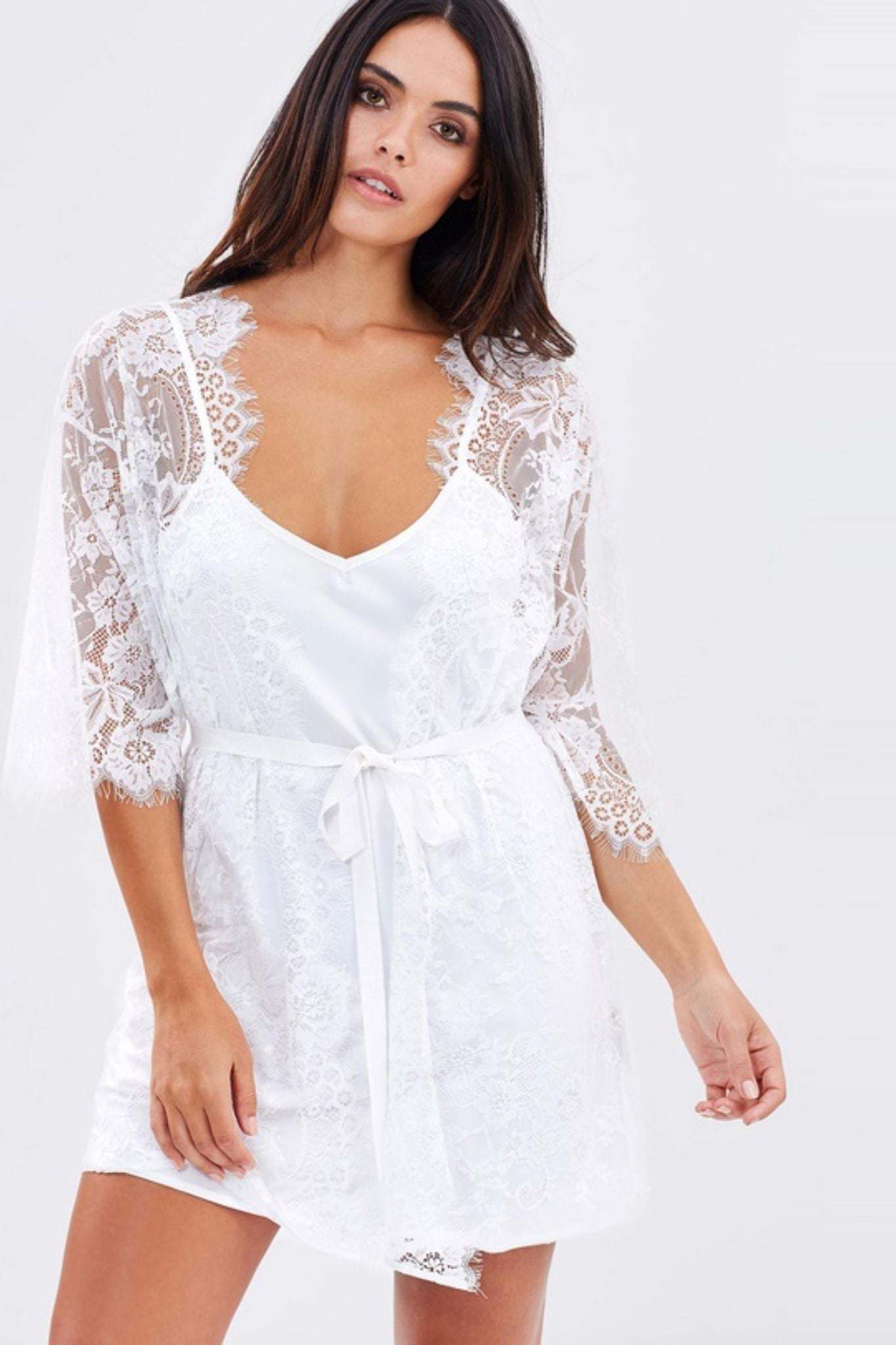 Crafted from sheer floral lace trimmed with eyelash scalloped edging for a luxurious finish, this robe exudes sophistication and romance. The intricate lace detailing creates a beautiful silhouette that's both elegant and comfortable. Whether you're lounging at home, preparing for a special occasion, or layering over the matching silky satin slip with adjustable shoulders and chic v-neckline, this robe ensures you feel indulgent and feminine. The delicate eyelash scalloped edging adds a refined touch to this exclusive design.