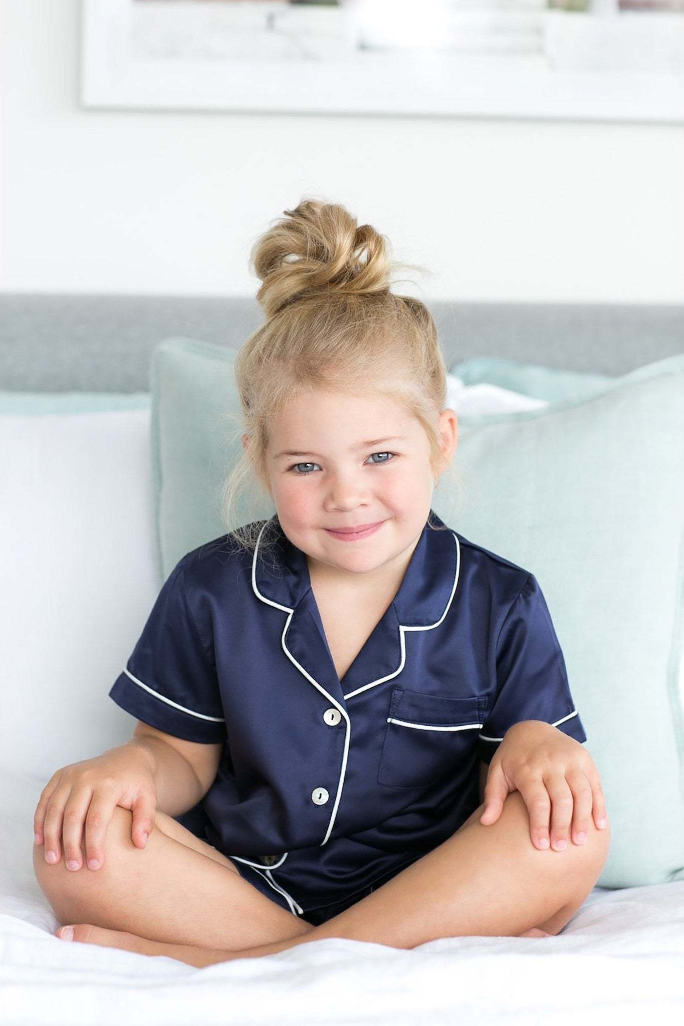 For little ones with a taste for sophistication, this navy set is the perfect choice. Intentionally designed to be comfortable whilst maintaining the chic and stylish quality that is homebodii®, this set lets your mini-me join in on the sleepwear fun. Crafted from premium OEKO-TEX certified non-crush satin that's gentle on delicate skin, the fabric stays smooth and comfortable all night long. Whether they're reading bedtime stories, enjoying lazy weekend mornings, or matching with mum, they'll feel special in their own luxurious pyjamas. Free from AZO dyes for complete peace of mind.