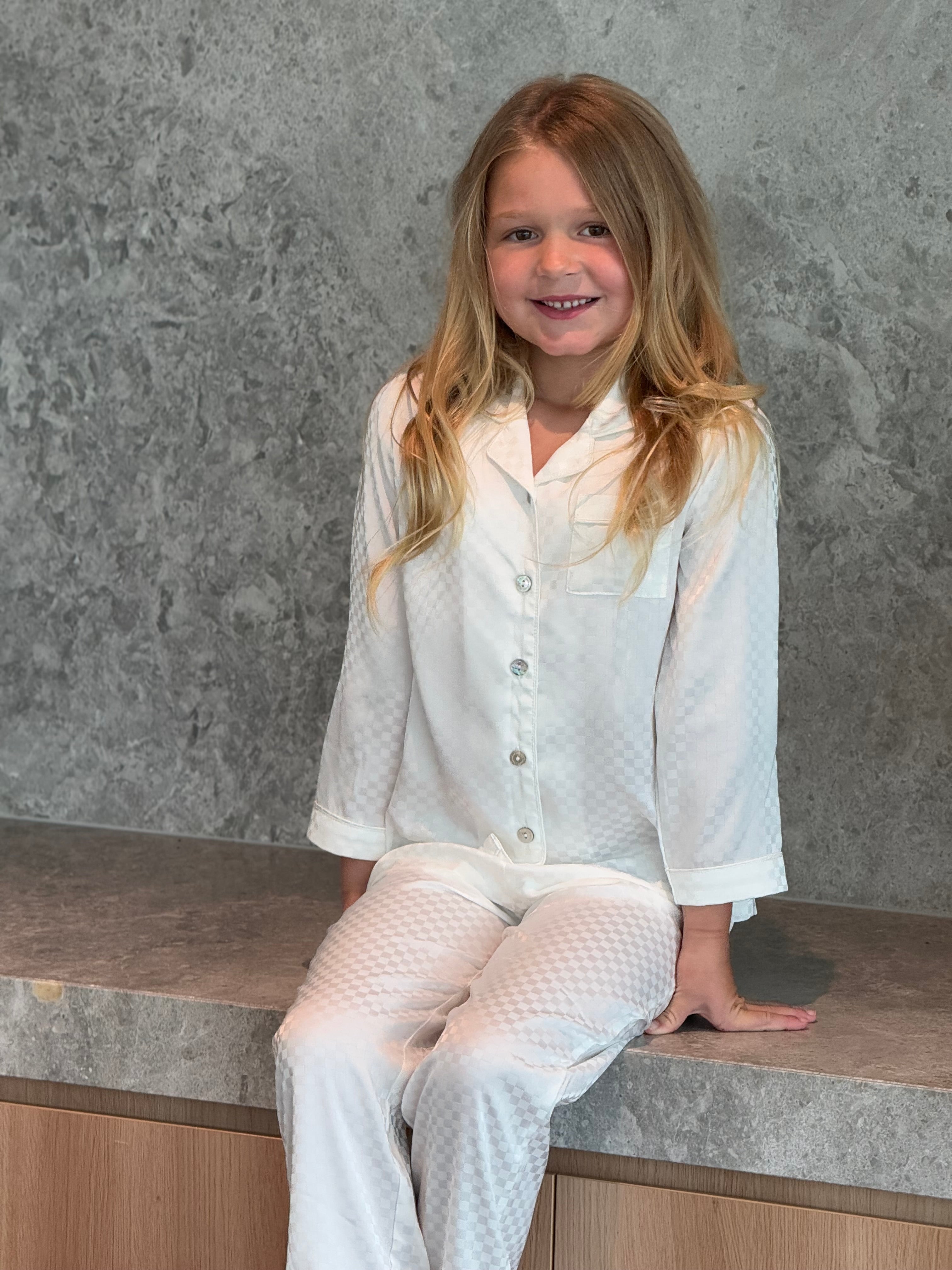 Matching Style: The Gigi Checked Satin Kids Pyjama Set is designed to perfectly coordinate with our women's Gigi collection, allowing for stylish matching moments with mom or older siblings.