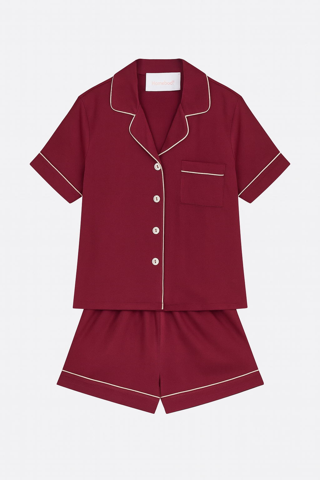Make Christmas mornings even more magical with the Homebodii Grace Pyjama Set in festive burgundy with delicate rose piping. Designed to match our beloved women’s set, these mini versions bring the same charm, comfort, and elegance to your little one’s bedtime routine.