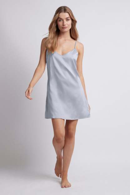 Sleek, chic and versatile, our homebodii? Jasmine satin slip is a style home run whether you wear it layered over a simple white tee with sneakers or snuggled up in bed. An everyday sleepwear essential, this minimalist slip is cut from flattering fluid matte satin and falls to a split mid-thigh hem. Adjust the pin-thin shoulder straps with rose gold hardware to find your perfect fit. Slip it on under any of our lace or satin robes for the ultimate sleepwear pairing.
