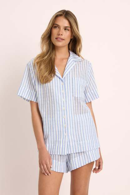 Leilani 100% Cotton Short PJ Set �C Blue Stripe