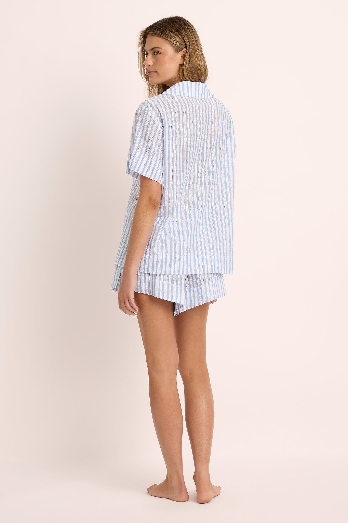 Effortless, breathable, and beautifully tailored �� the Homebodii Leilani Cotton Lounge Set in Blue Stripe redefines relaxed sophistication. Crafted from 100% cotton, this lightweight set features a subtle open-weave texture that allows the fabric to breathe, creating a perfect balance of structure and softness.