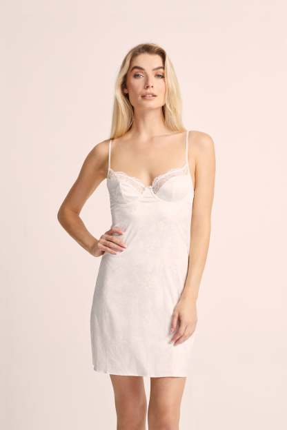The intricate woven patterns drape beautifully, flattering your natural curves. With built-in bust cups for gentle support and a seamless silhouette, the Miami Slip features delicate lace detailing and adjustable spaghetti straps for a customized fit. Easy to care for �� simply machine wash and hang to dry.