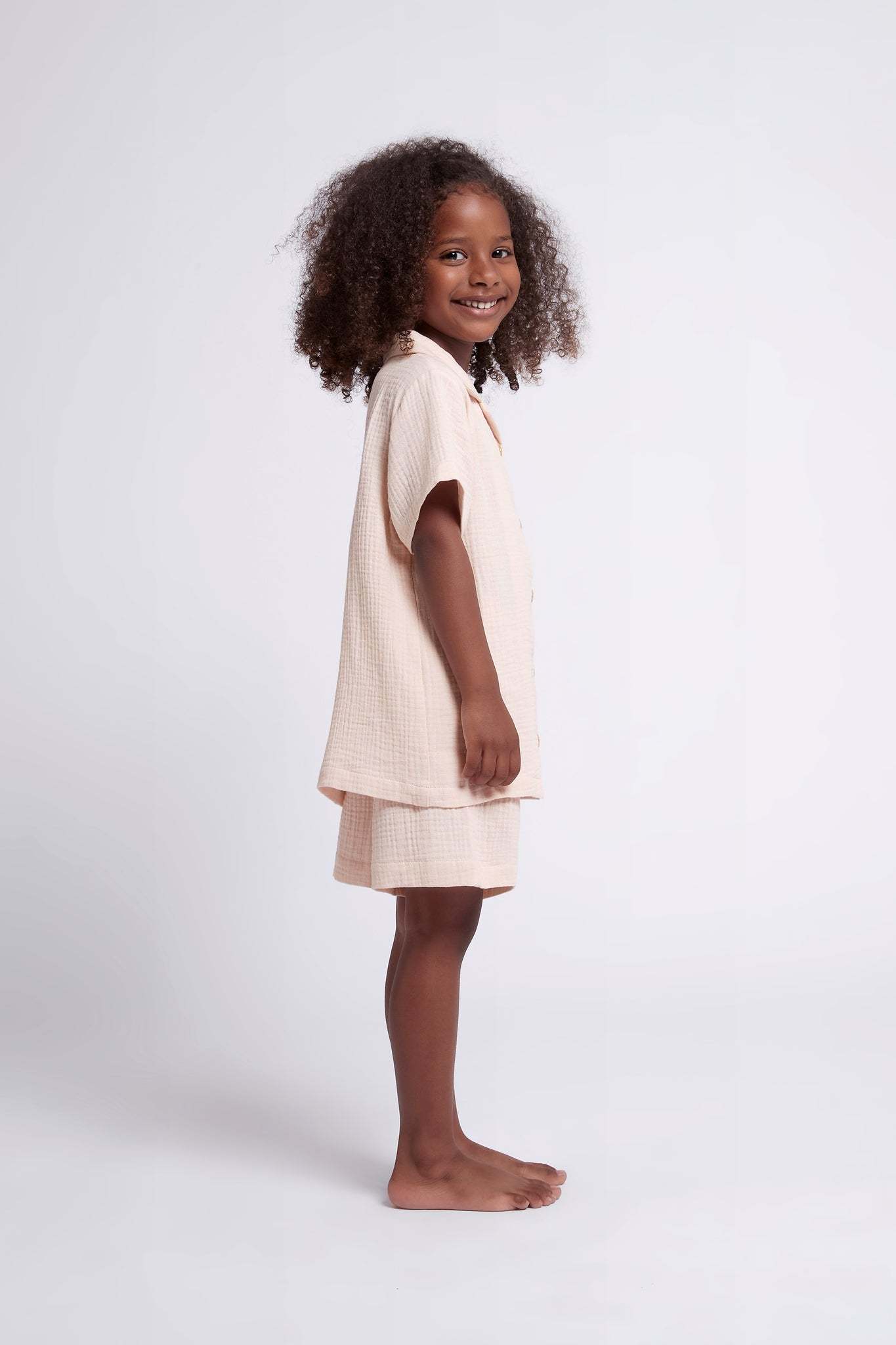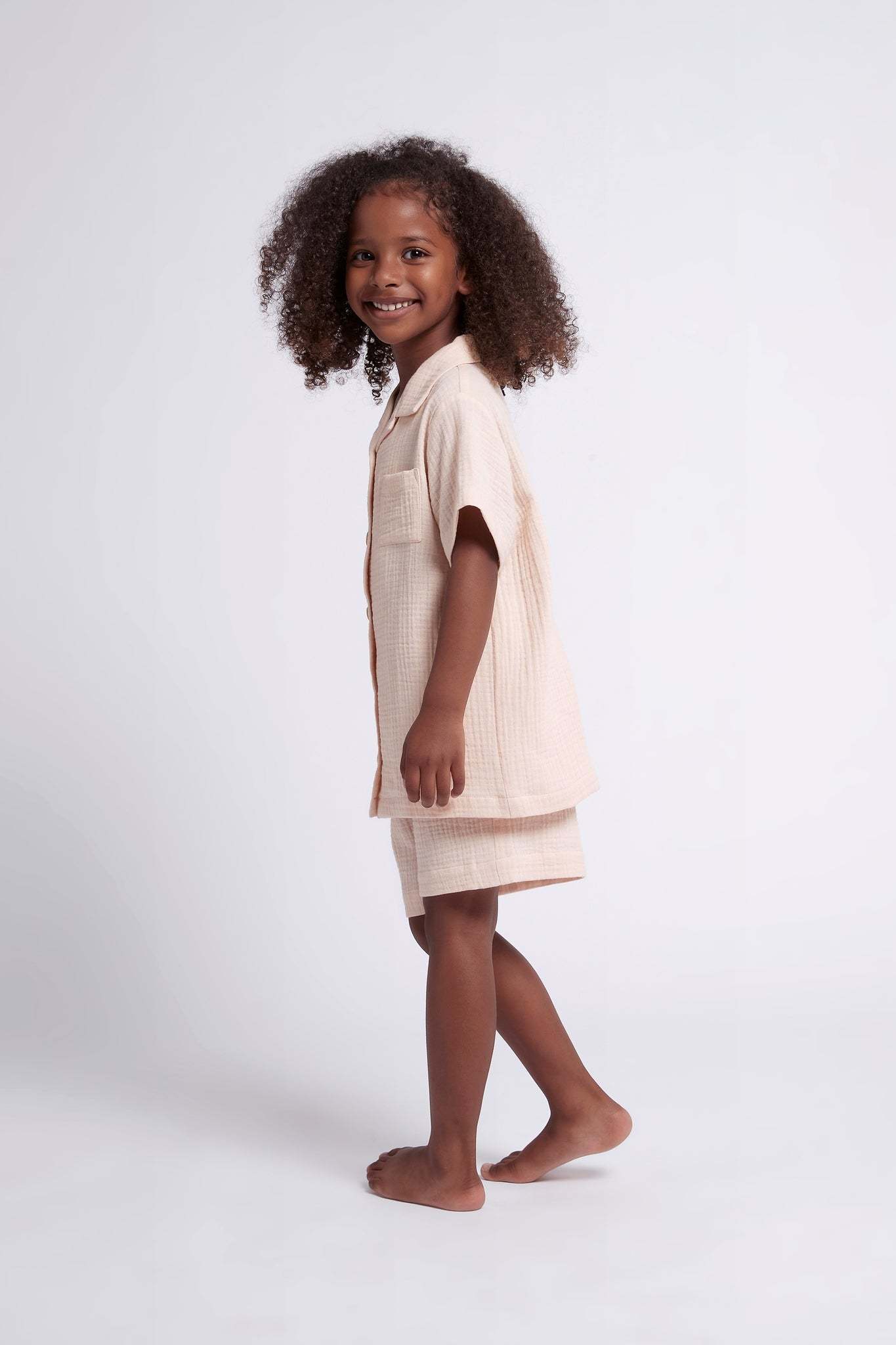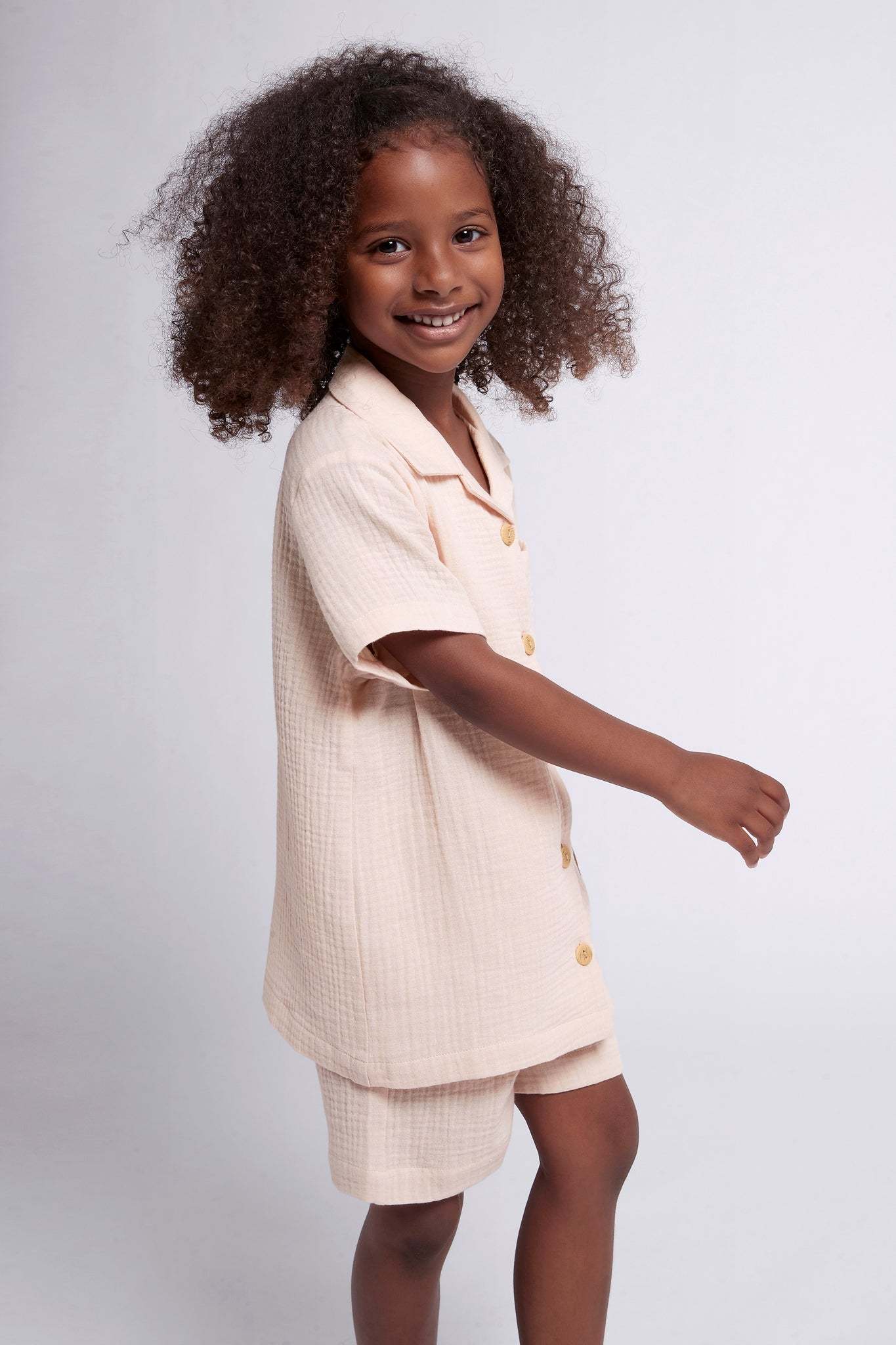 Cute and comfy, our Piper Bubble Cotton Children's Short Pyjama Set is what every little homebody needs this summer. Keeping them cozy and cuter then ever, this PJ set features wooden buttons, and a stretchy waistband for ultimate comfort! Made from 100% cotton, the Piper Bubble Children's set is designed in Australia with a beautiful blush colour. It also matches perfectly with our Women's Piper Bubble set.