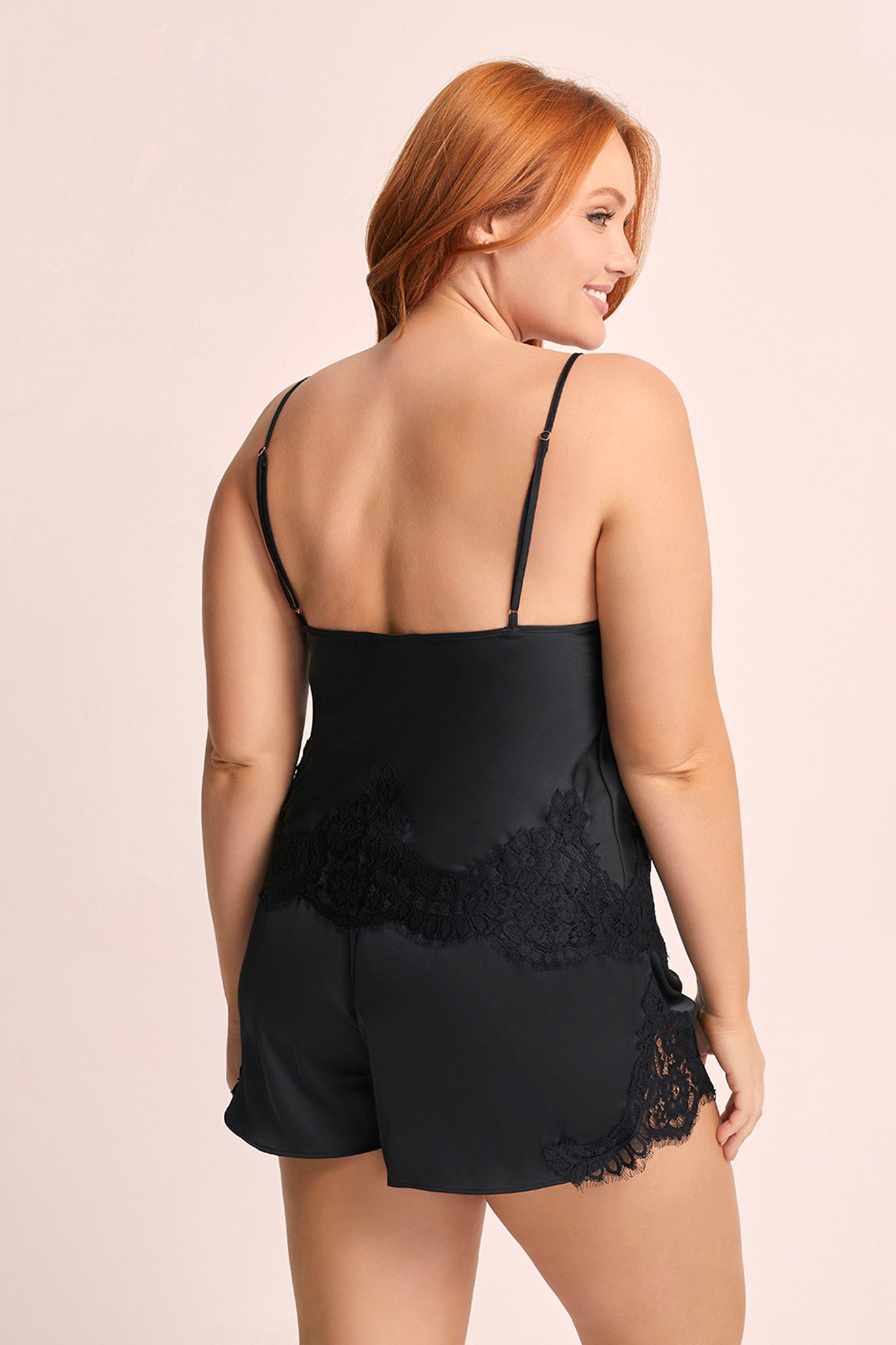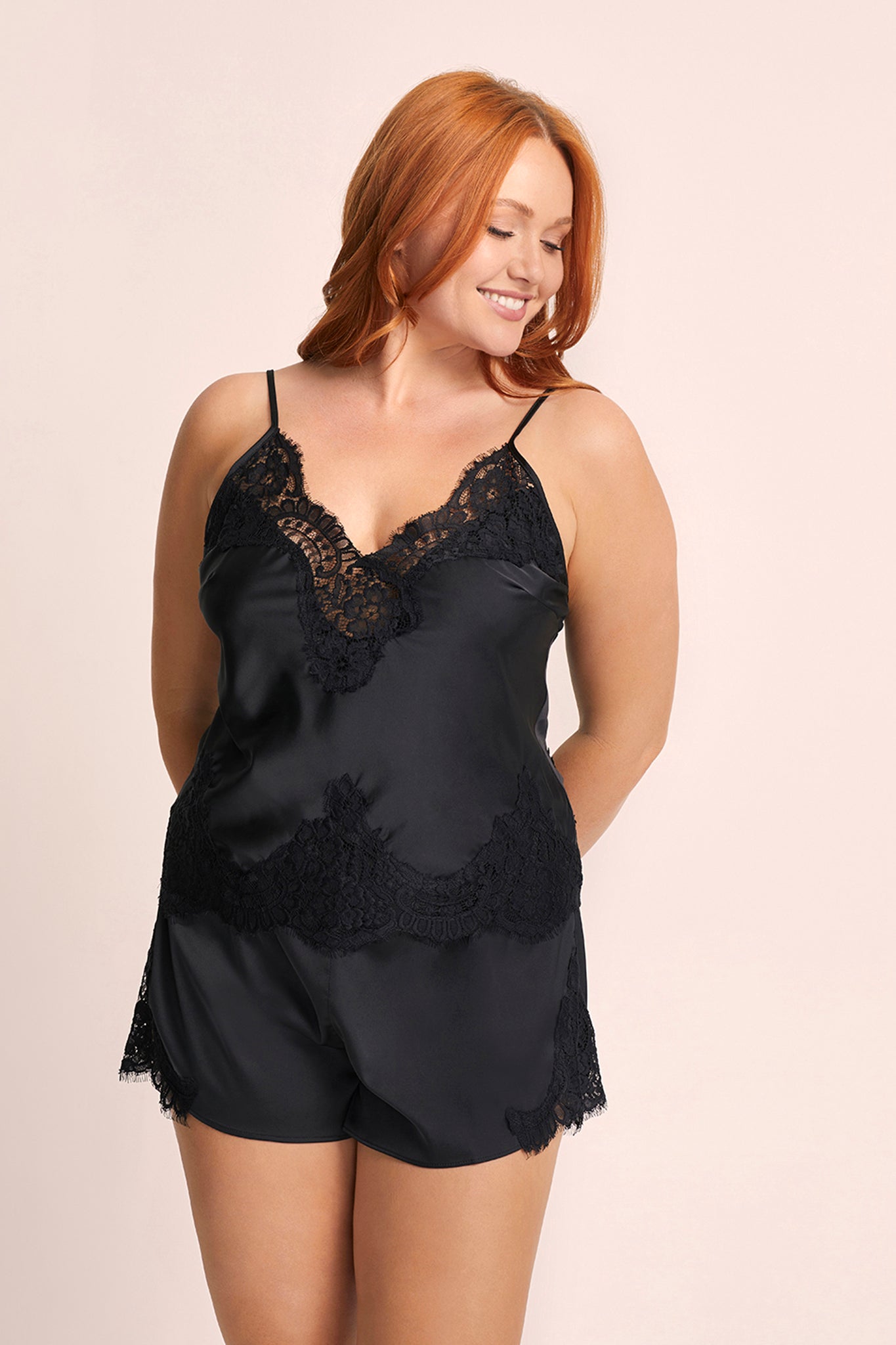 Looking for something audacious and unique? The Sian Lace Satin Cami Set is crafted from exquisite black cotton lace with a captivating floral pattern, expertly cut on the bias for a flattering and comfortable fit.