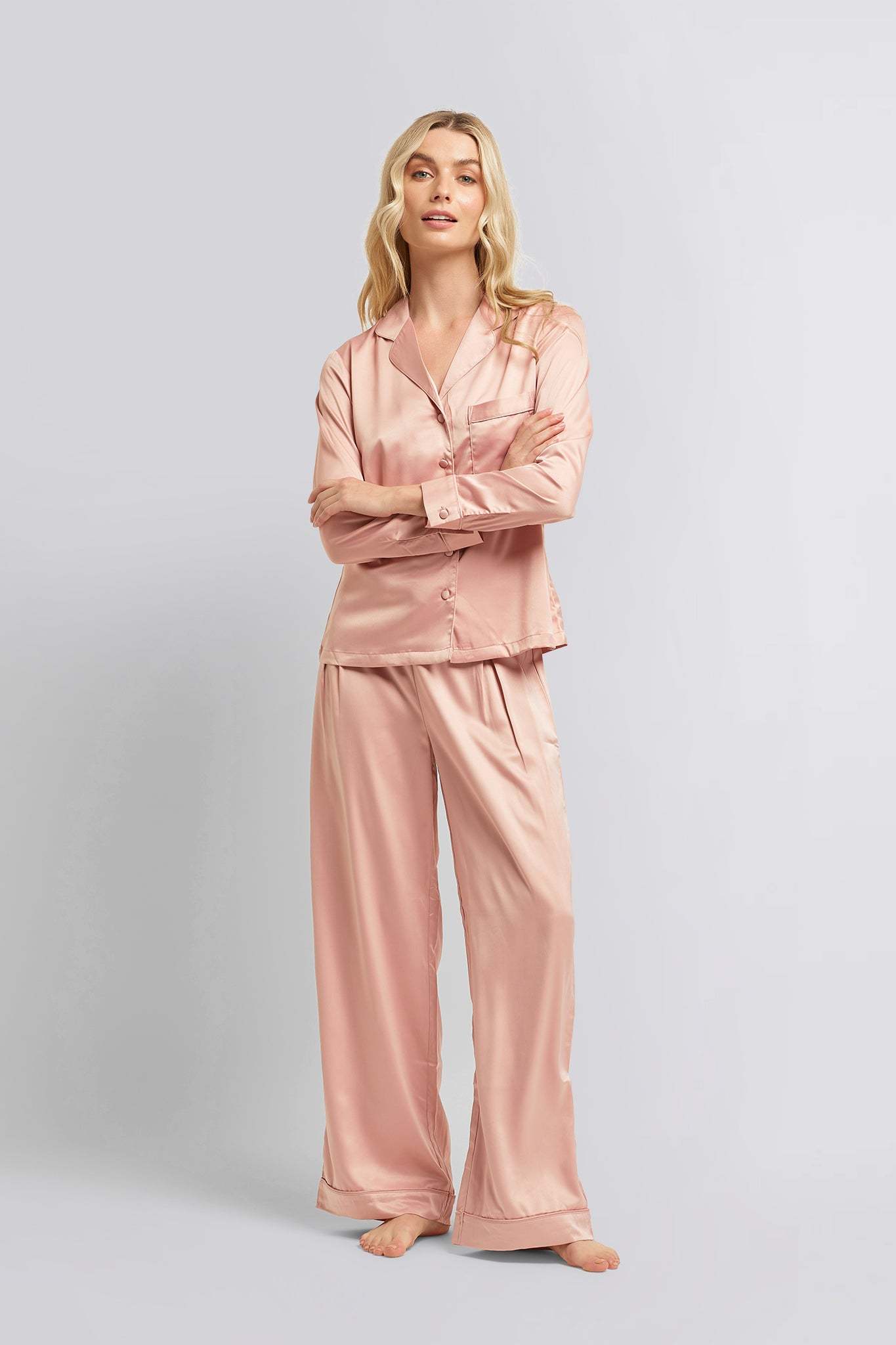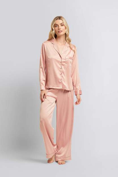 Indulge in timeless elegance with Homebodii?��s Toni Satin PJ Lounge Set, a classic spin on glamorous long-sleeved matching satin pyjamas. This sophisticated duo is meticulously crafted from buttery soft OEKO-TEX? satin, free from nasty chemicals and azo dyes, ensuring a gentle touch against your skin. Featuring self-colour piping detail, the set exudes refined yet stylish charm. The adjustable waistband guarantees maximum comfort, promising the dreamiest of sleeps.